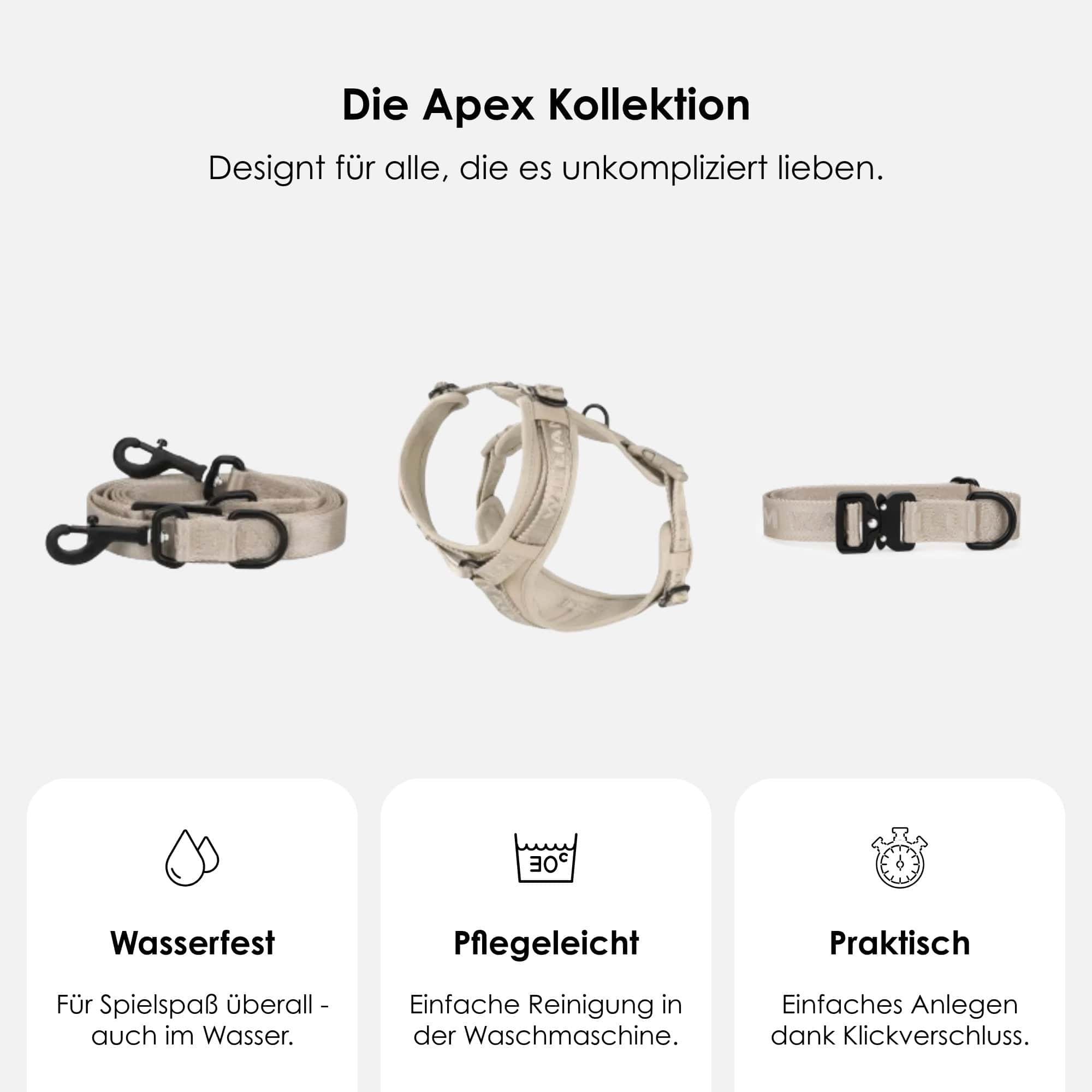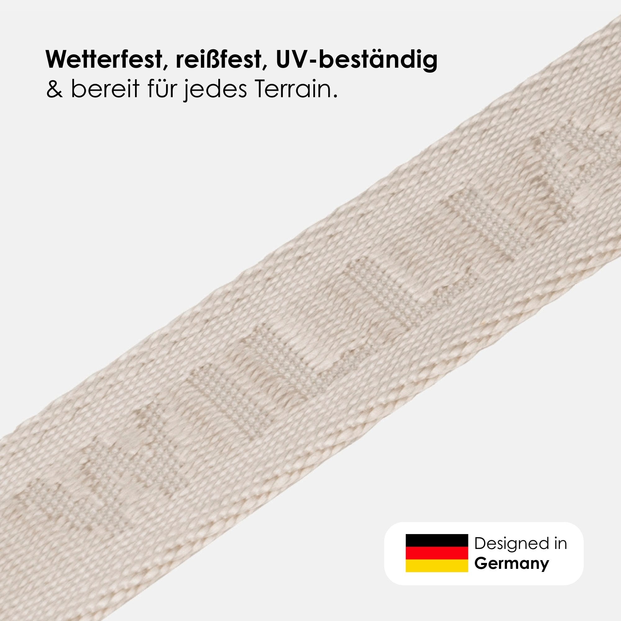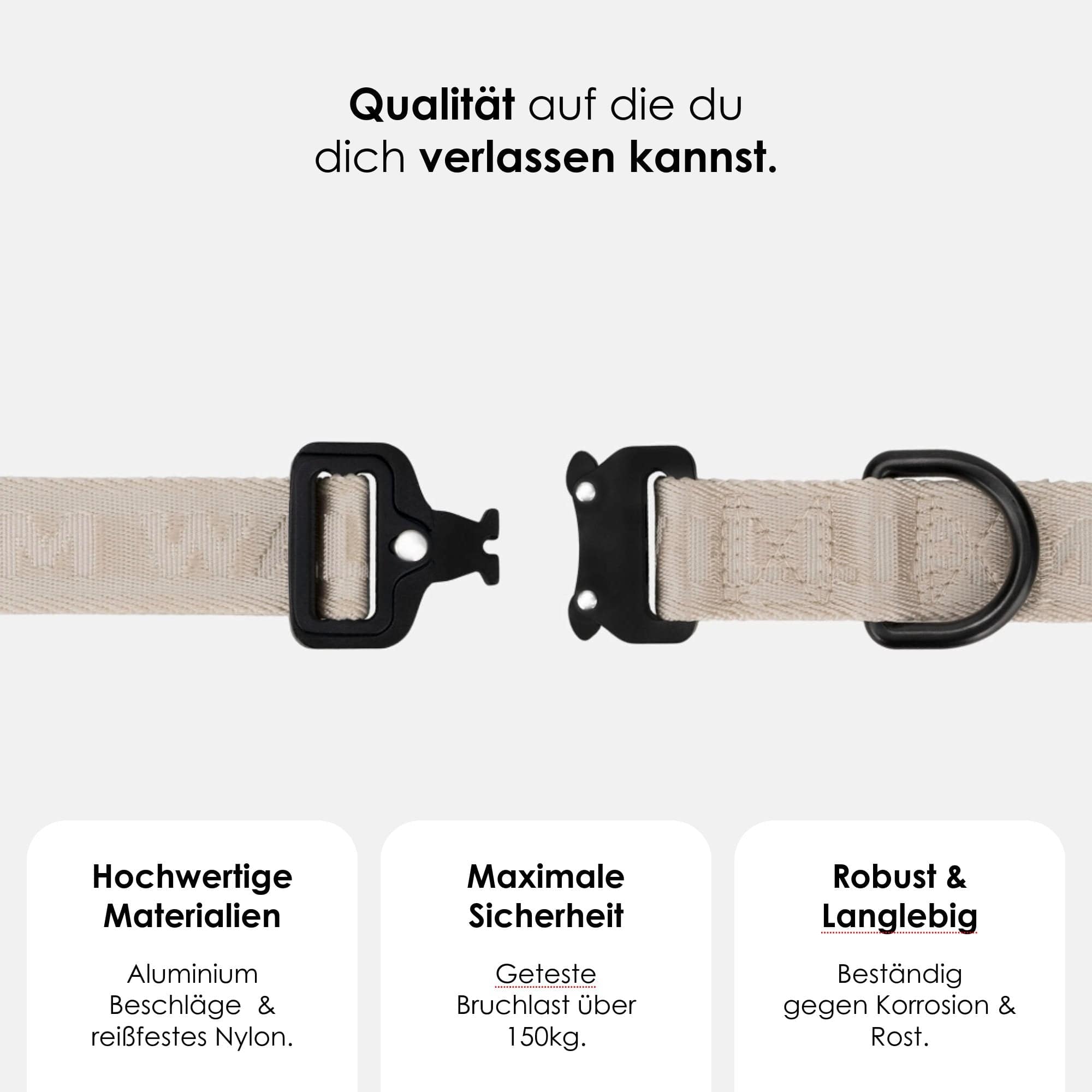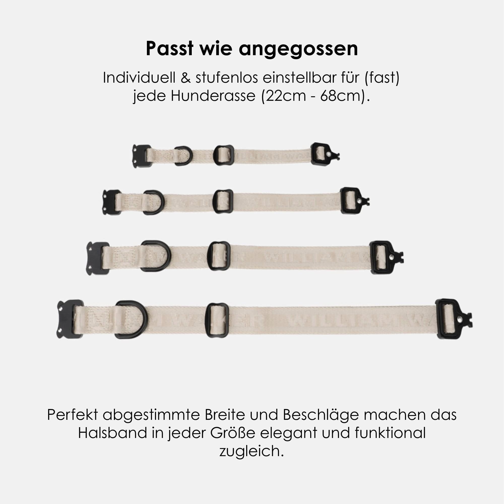 Collar para perro en jacquard beige de alta calidad, fabricado en nailon tejido con cierre de clic de aluminio ultraligero y ajustable sin escalonamientos.