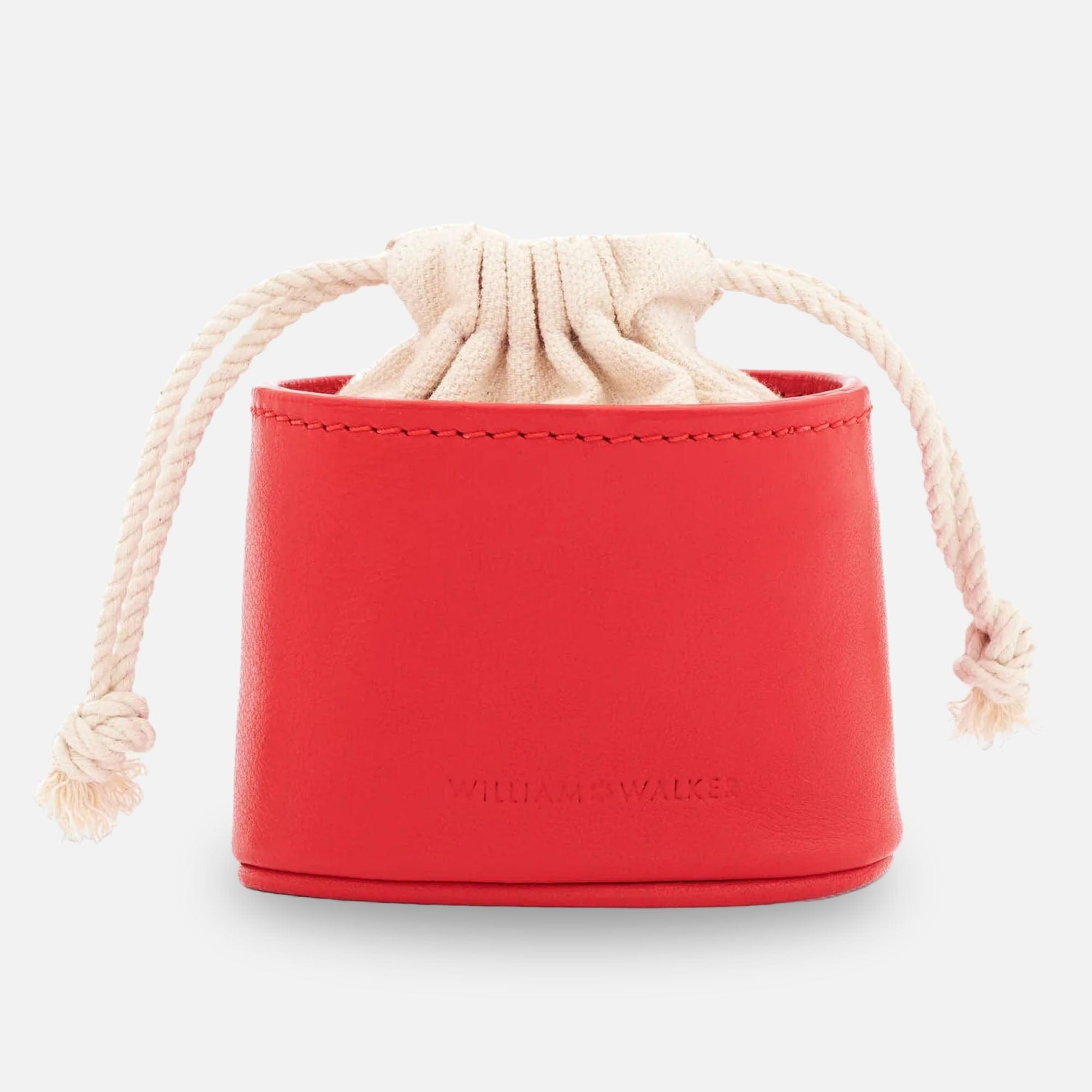 Sac à friandises de haute qualité en cuir orange avec des possibilités de fixation pratiques pour un dressage de chien stylé.